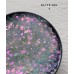 Голографические блестки-пайетки в форме кругов и шестиугольников и хлопья юкки.